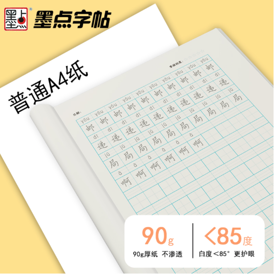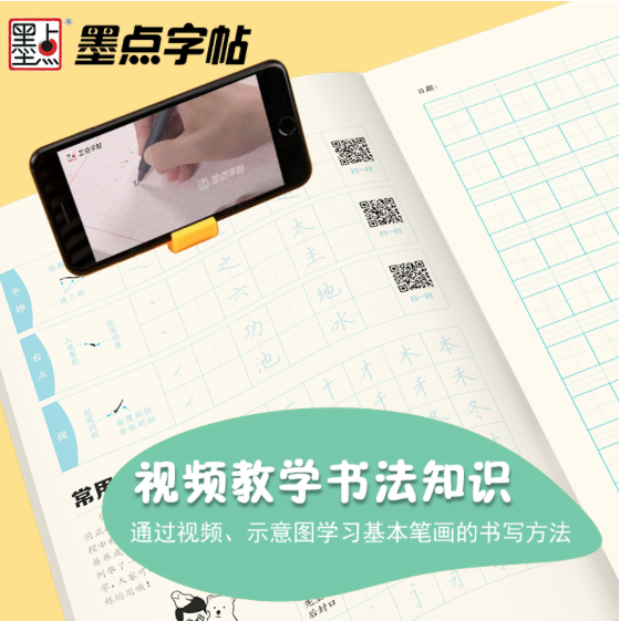 学生护眼书写本·拼音田字格增设了练字计划栏目,学生可以根据自己的情况为自己制定练字计划,并养成每日打卡的习惯;书法课堂归纳了基础书写知识,通过视频、示意图学习基本笔画的书写方法,通过描红、临写的方式进行书写练习,加上常用笔顺规则的学习,纠正“发倒笔”的习惯,帮助学生打好练字基础;